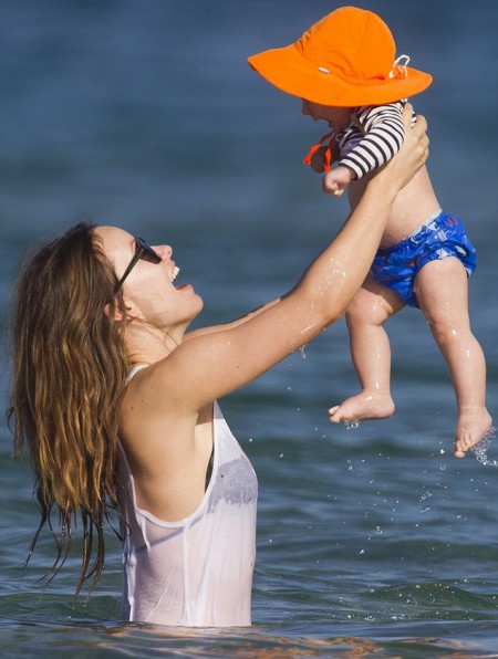 Olivia Wilde pokračovala v dovolenkovaní s rodinkou na Maui aj začiatkom minulého týdňa. Takto sa kúpala s malým Otisom v pondelok.