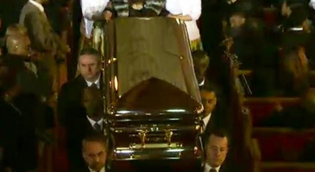 Speváčku Whitney Houston († 48) pochovali vedľa jej otca na cintoríne Fairview Cemetary v New Jersey. Naposledy sa tak odviezla v zlatej limuzíne sprevádzanej policajnou eskortou. Obrad sa konal v kostole New Hope, kde Whitney začínala. Lúčili sa s ňou aj jej priatelia. Dlhú reč predniesol jej bývalý filmový partner Kevin Costner, producent a mentor Clive Davis. Alicia Keys a Stevie Wonder jej zaspievali pieseň. Exmanžel Bobby Brown nahnevaný odišiel už na začiatku obradu, neskôr už spieval na svojom vlastnom koncerte. V rakve z platiny so zlatou rukoväťou ju odniesli na miesto je posledného odpočinku. Na cestu im hrala azda jej najznámejšia pieseň – I Will Always Love You.