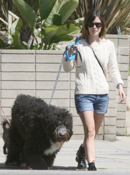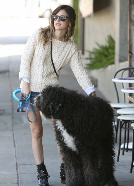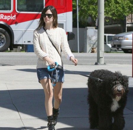 Hovorí sa, že pes sa podobá na svojho pána, nie? V tomto prípade to neplatí, Rachel Bilson nie je žiadny veľký chlpatý kamionista. Herečka je len o niečo väčšia od kýbla a jej štvornohý miláčik pri nej vyzerá ešte obrovskejšie. Mať takéhoto Dunča nesie so sebou množstvo výhod, napríklad Rachel si nemusí platiť bodyguarda alebo osobného šoféra. Dunčo ju ochráni a na chrbte odnesie kam treba. Je tiež vhodným strážcom oviec na salašoch, ale na to ho Rachel asi nevyužíva. A ešte sa naňho pred telkou dobre vykladajú nohy. Keď sme pri nohách, Rachel nedávno v rozhovore prezradila, že jej nohy nenarástli od trinástich rokov a preto všetky topánky od tohto veku skladuje u seba doma. Nevie sa ich vzdať lebo sú jej stále dobré, ale už ich má priveľa a nemá ich kam dávať. To je VÁŽNY problém! Obdivujem ju, že sa stále drží a ešte sa nescvokla.
