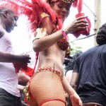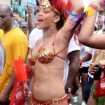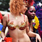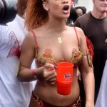 Rihanna je doma na Barbadose a medzi svojimi sa dokáže (ešte) viac odviazať. Svojou slávnou odhalenou zadnicou sa rozhodla poctiť slávnostný sprievod počas sviatku Kadooment (má to niečo s históriou ostrova.) K svojmu typickému imidžu fetišistického červenovlasého dievčiska hladného po sexe, ktorý mala naposledy ráno, ešte Rihaňa pridala pohárik v ruke ( z ktorého pila možno pivo a možno semeno najudatnejších bojovníkov ostrova – neviem presne aké zvyky sú na Barbadose, ale podľa toho ako sa správa Rihanna pekne divoké), oblečenie, ktoré naozaj zakrylo len to najnutnejšie a špásovanie so statnými černochmi, s ktorými predvádzala pred davom, napríklad sex zozadu (posledná foto).